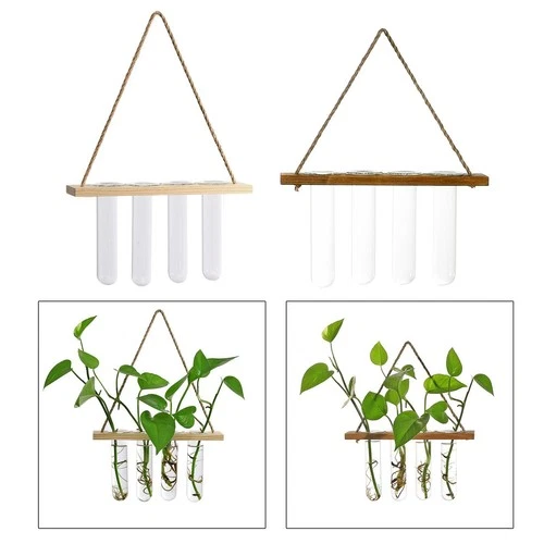 Glass Hanging Planter Terrarium Hydroponic Plants Wooden Hanger Test Tube Vase