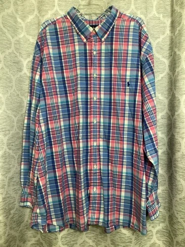Ralph Lauren Men’s Button Up Shirt Size 4XB TG 100% Cotton Stretch Plaid