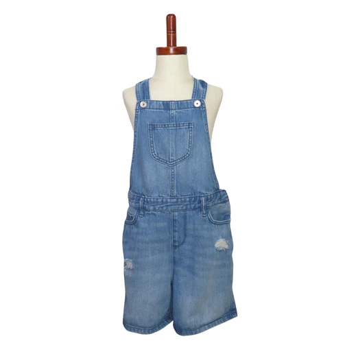 The Children’s Place Medium Wash Denim Distressed Jean Girls Shortalls Size 6x/7