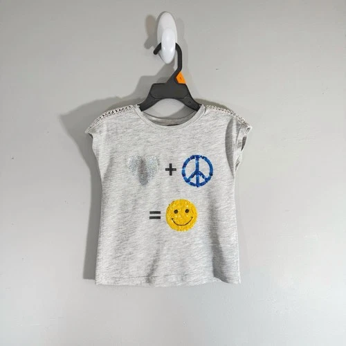 The Children’s Place Lace Shoulder Top Girl’s Size 4 XS Heart Peace Smiley Face