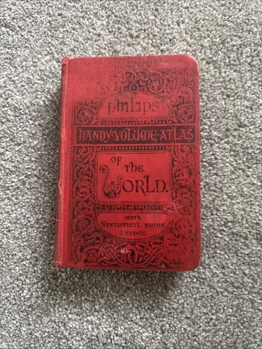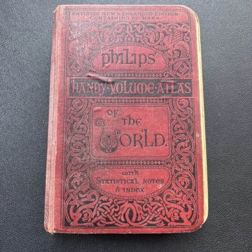 Philip’s Handy-Volume Atlas of the World 1923 • 77 Maps • Vintage Red Cloth