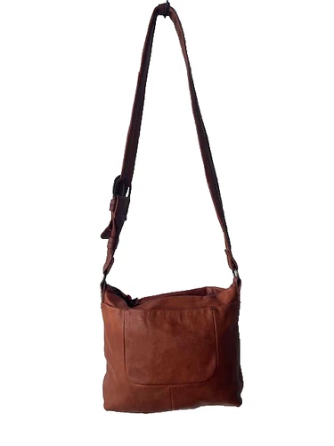 The Sak Crossbody Purse Small Tan Leather Gold Strap Detail Zip Closure Casual