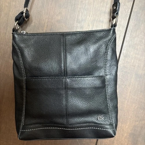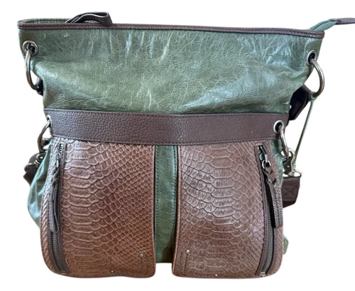 The Sak Green Brown Distress Leather Satchel crossbody shoulder Bag 11x13x4”
