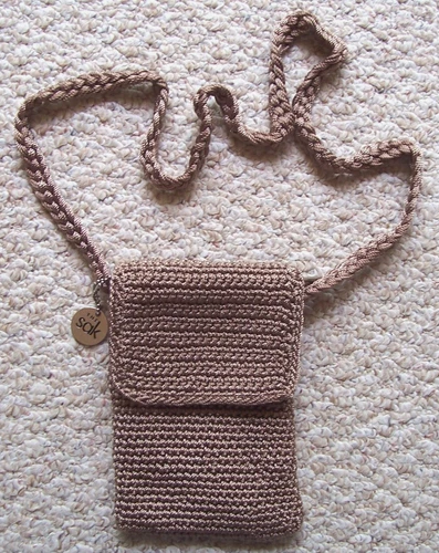 The SAK Small Tan Shoulder Knit Crochet Bag Purse Flap Woven Zip 5" Wide 8" Tall