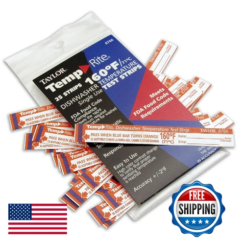 Taylor 8766 Dishwasher Thermometer Test Strips 160°F Temp-Rite