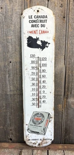 Large 36” Vintage 50s Tin Metal CANADA CEMENT Co Advertising Thermometer