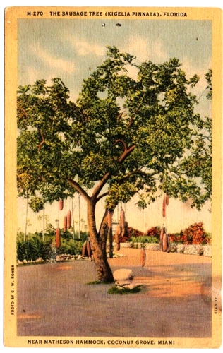 Vintage Linen Postcard the Sausage Tree Kigelia Pinnata Miami FL