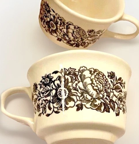 Sussex Ironstone Royal Ceramic Cup Mug Set of 5 Vintage Brown Cream MCM 1970 USA