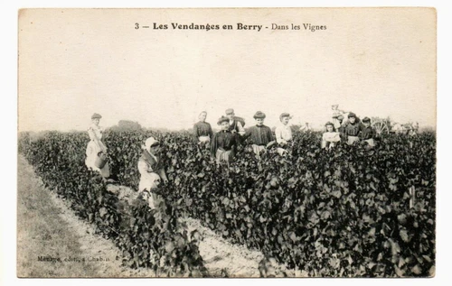 Vintage French Postcard Les Vendanges en Berry Dans les Vignes Harvest France