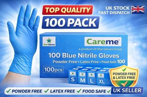 Blue Nitrile Gloves 100 Pack Powder Free Latex Free Food Safe S M L XL UK