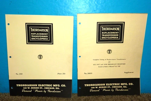 Thordarson Replacement Transformer Encyclopedia No. 243 & 243-S Supplement 1937