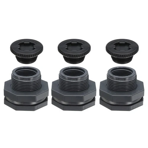 3pcs PVC Bulkhead Fitting Plug G 1, Threaded Bulkhead Water Tank Connector, Grey