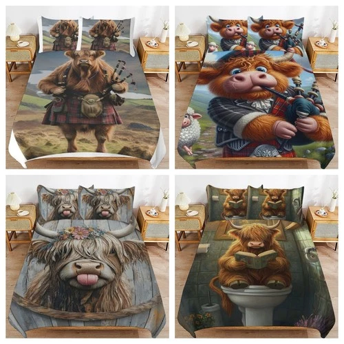 3D Scottish Highland Cow Bedding Set Duvet Cover Single Double King Pillowcase