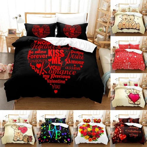 3D Valentine's Day Pattern Series Digital Printing Bed Cover Pillowcase Bedding
