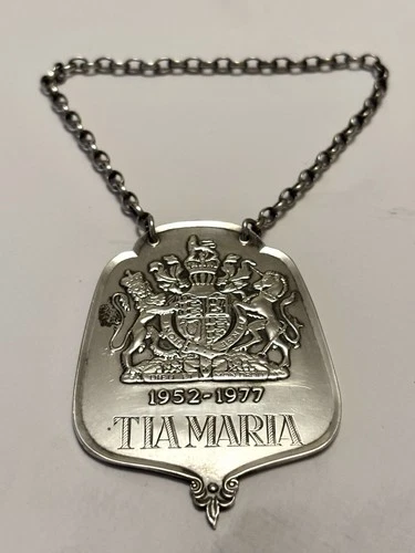 Sterling Silver Ltd Ed Decanter Label TIA MARIA Queens Jubilee 1977 Roberts Belk