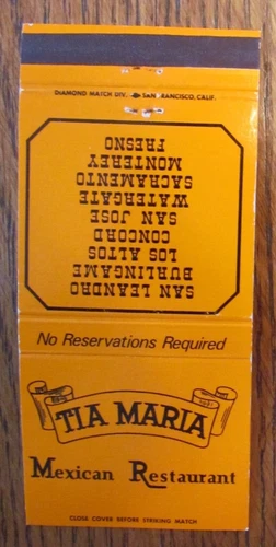 POCKETBOX MATCHBOX COVER: TIA MARIA MEXICAN FOOD HOUSTON, TEXAS EMPTY MATCHCOVER