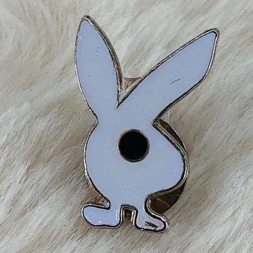 Vtg Reverse White Playboy Bunny Enamel Lapel Pin Tie Tack