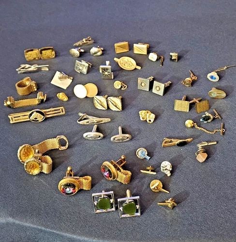 49 Pcs Men's Jewelry Lot: Cuff Links, Tie Tacks & Tie Clips Pins, Ship Hat pin