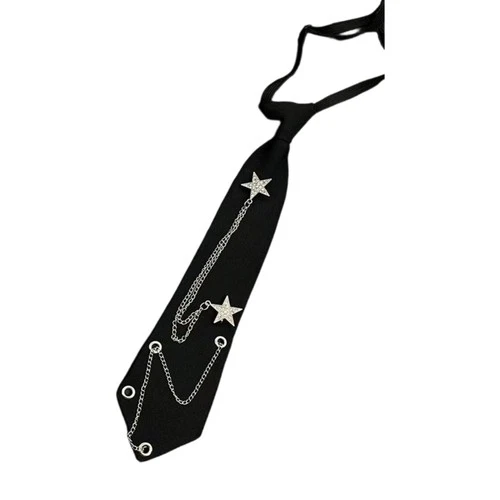 Punk Star Chain Decors Neck Tie JK Costume Everyday Wear Uniform Tie for Student