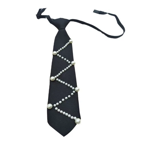 Premium Pearls Detailing Tie Flexible Polyester Neckwear Comfortable for Kids