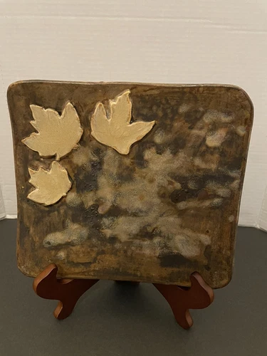 Beautiful Stoneware Art ~ Hot Plate Tile Leaf Ceramic Glazed