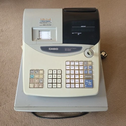 Casio Electronic Cash Register TE-100 With Till Rolls / Keys For A Shop Working