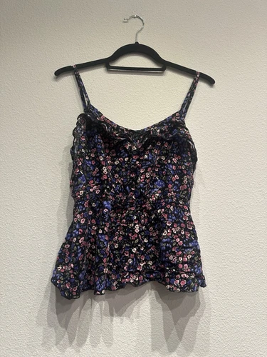 Full Tilt Floral Babydoll cami top with ruffle trim and adjustable straps small