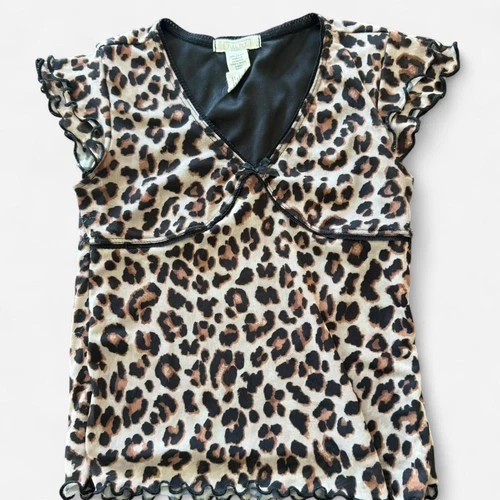 Leopard Print Full Tilt Babydoll Short Sleeve Top, Size Small, 12” ptp