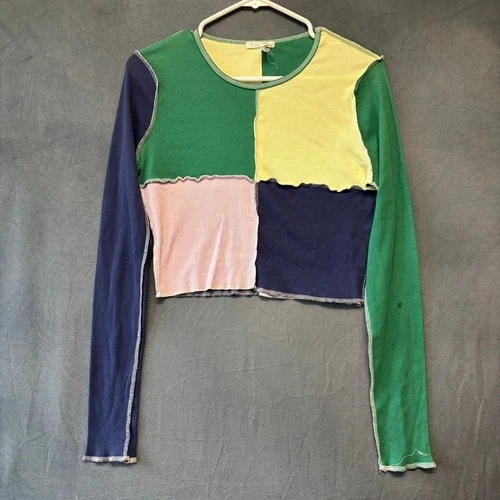 Full Tilt Y2K Patchwork Crop Top Colorblock Long Sleeve XXL Fitted Skater Hippy
