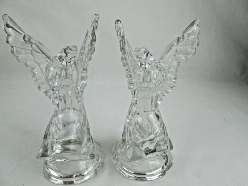 Timeless Treasures Angel Candle Holder Set of 2 Clear Glass 7"