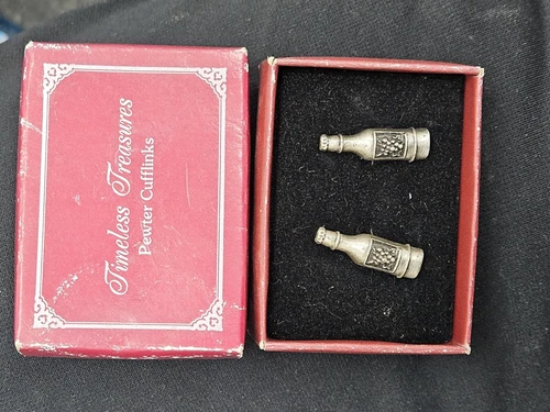 Timeless Treasures Pewter Cufflinks Bottles Silver Tone New W Box Vintage