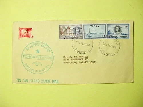 TONGA 1956 Tin Can Island Canoe Mail Niuafoou Island to USA SS Mariposa