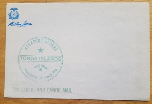 MATSON LINE envelope Stamped on is "Tonga Islands...Tin Can Island Canoe Mail"