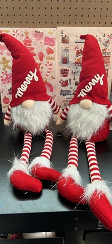 Christmas GNOME 22"!! Weighted, Peppermint Square, Mantle, Red And White, Tinsel