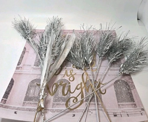 Vtg Silver Tinsel/Foil Floral Picks Sprays Set of 7 Japan? Crafting Decor READ