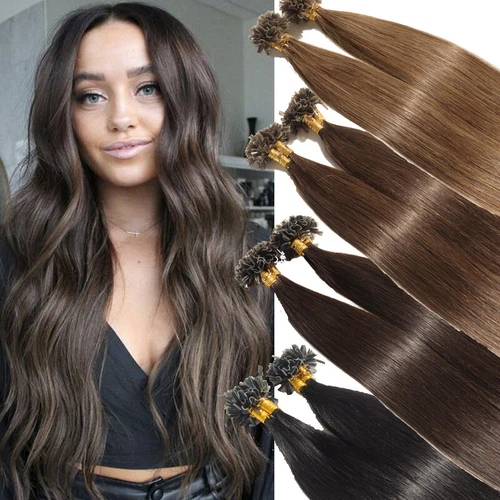 Nail U Tip Pre Bonded Keratin 100% Remy Human Hair Extensions Brown/THICK#0.5g/s