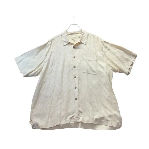 Joseph & Feiss Mens XXL Silk Tropical Jacquard Camp Shirt Off White Short Sleeve