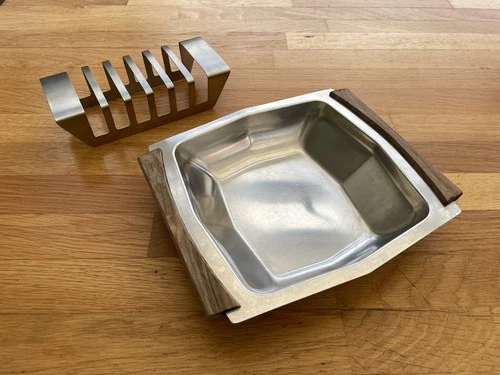 Mid Century Danish Stainless Steel Serving Tray Bowl & Viners Toast Rack