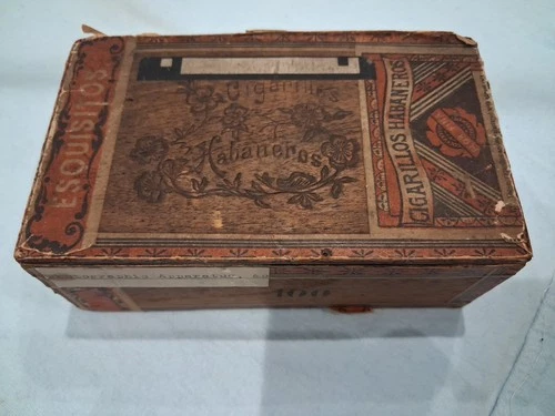 Vintage Wooden Cigarillos Habaneros Box. Size 9cm X 15cm X 5.5cm. Hinged Lid.