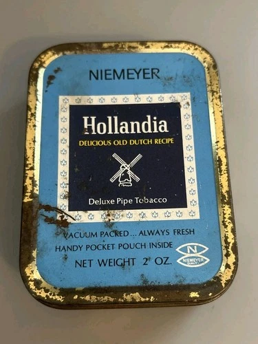 Niemeyer Hollandia Deluxe Pipe Tobacco Tin 2 Oz Blue Dutch Tobacco Advertising