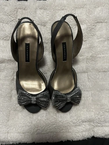 Caparros Silver Slingback Heels Rhinestone Bow Open Toe Dress Shoes Size 6.5B
