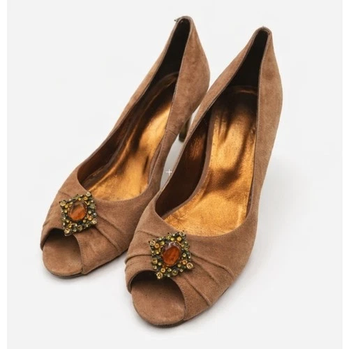 LK Bennett Shoes Pink Suede Embellished Peep Toe Vintage Heels UK 6 Euro 39