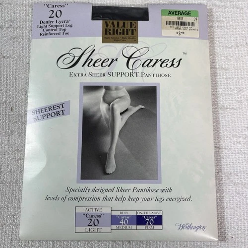 Worthington Sheer Caress Sheerest Support Avg Pantyhose Navy Reinforced Toe