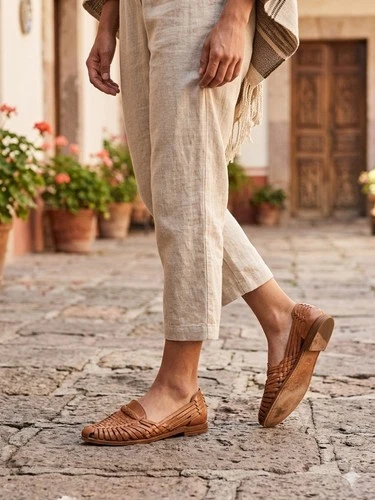 Frye Camel Leather Woven Huarache Pointed Toe Flat Loafer Size 11 B Camel
