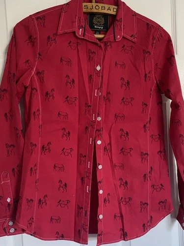 Toggi Stretch Ladies Fitted Horse Print Shirt Red Size 8 Used But Good