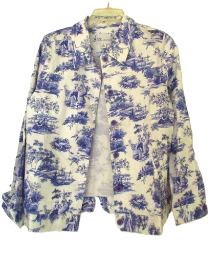 NEW The Tog Shop Blue French Toile Jacket Cotton Spandex MED Country Cottagecore