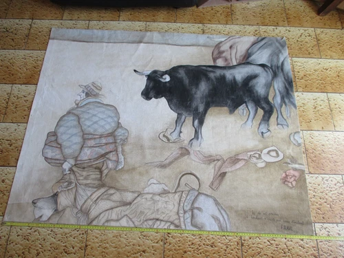 "le bolero de Clavel" oil on canvas bull and bullfighter bullfighting Béziers