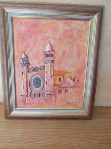 Oil On Canvas Signed Paul Chiner 2003 VF Mosque Orange Tones Orientalism