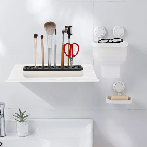 Sundries Storage Shelf Bathroom Rack Organiser Shelves Clear Wall