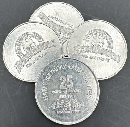Reno Rodeo 50th Anniversary Cal Neva Happy Birthday Club Token Coin Lot of 4